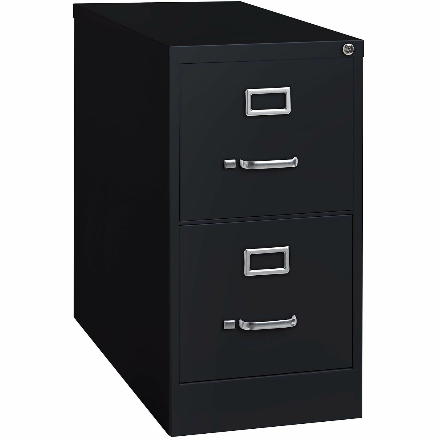 - Bold 26.5"D 2-drawer letter-size vertical file cabinet in black.